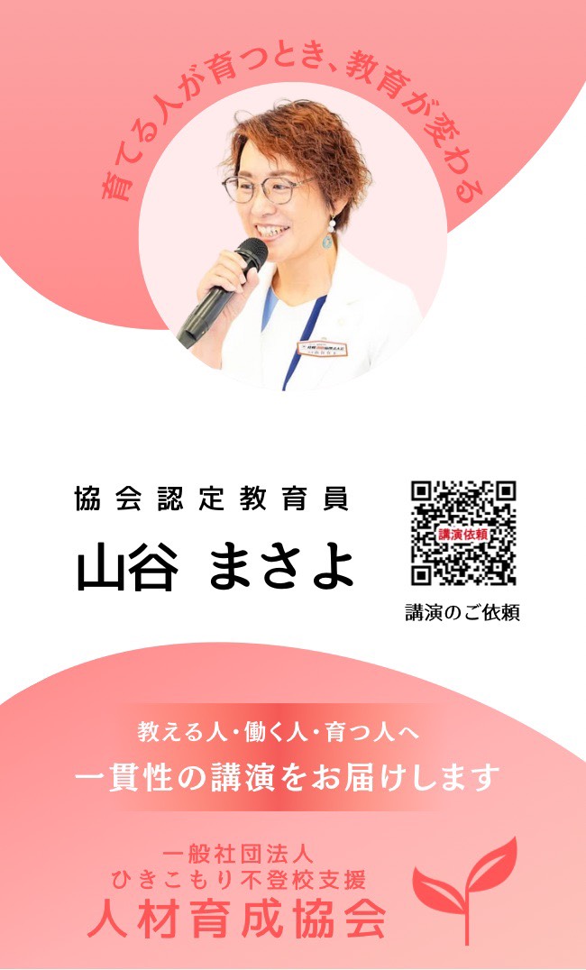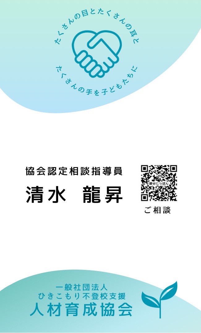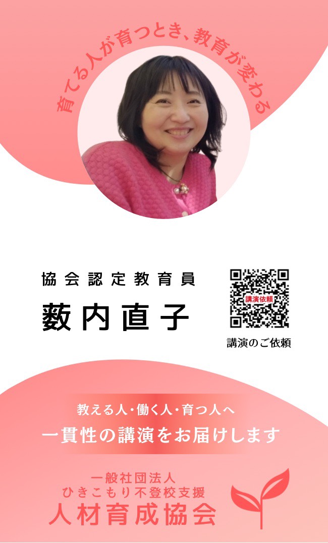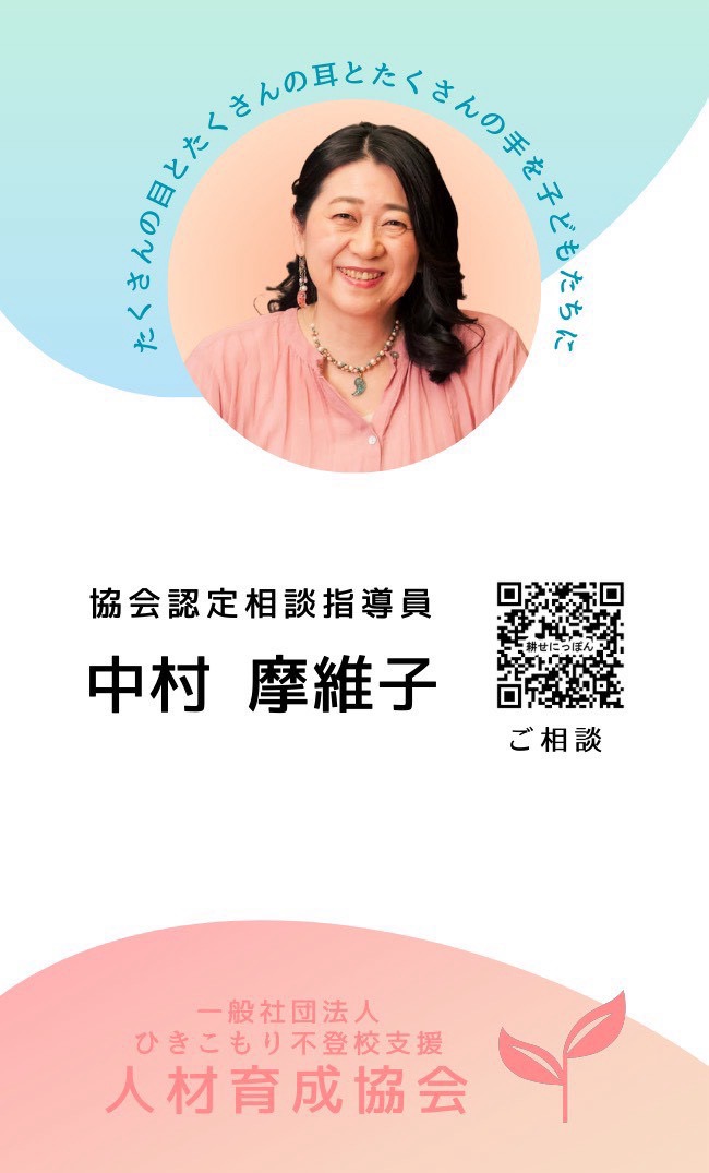東野さんの講演会で、耕せにっぽんと,相談指導員研修を知りました。私の周りにも、行き渋りの子や不登校の子がいたり、不登校引きこもりに悩むママたちが多いので、そのお役に立ちたいと相談指導員になりました。